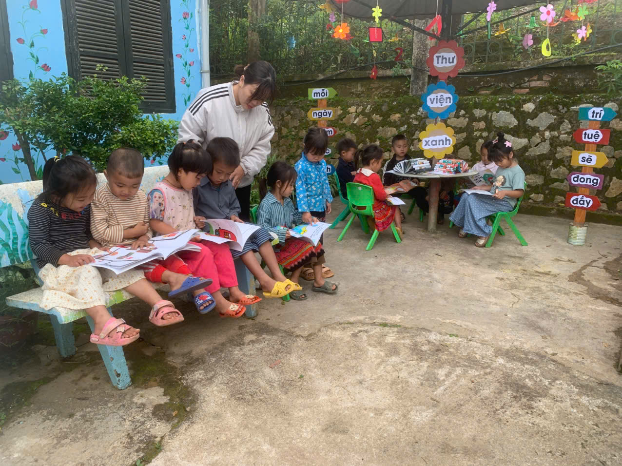 Trường mầm non Sao Mai xã Na Son cho trẻ làm quen với việc đọc sách
